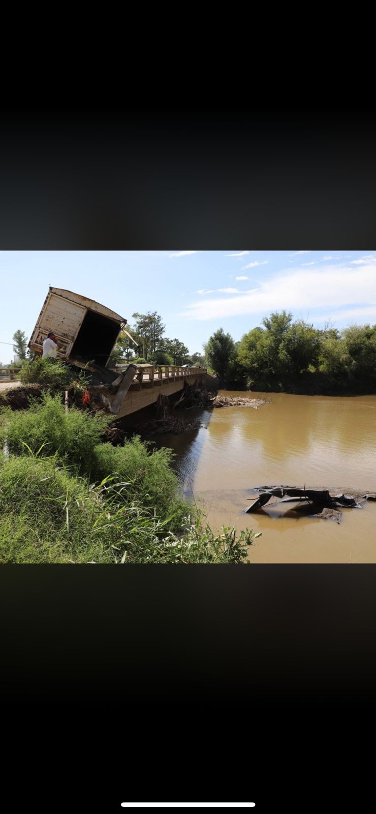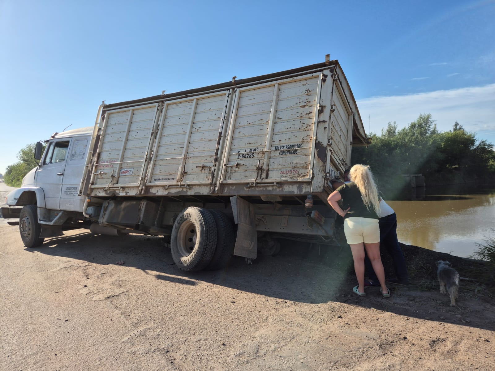 Lo que ha trascendido hasta el momento es que circulaba de oeste a este. El camión quedó cruzado en la calzada mientras que el acoplado se habría desprendido y caído al río. El mismo transportaba una carga de girasol.