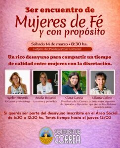 Un formato que se ha probado con éxito en otras oportunidades, el desayuno tendrá lugar en el galpón del Polideportivo Comunal a partir de las 8.30 hs. bajo el lema Mujeres de Fé y con propósito.